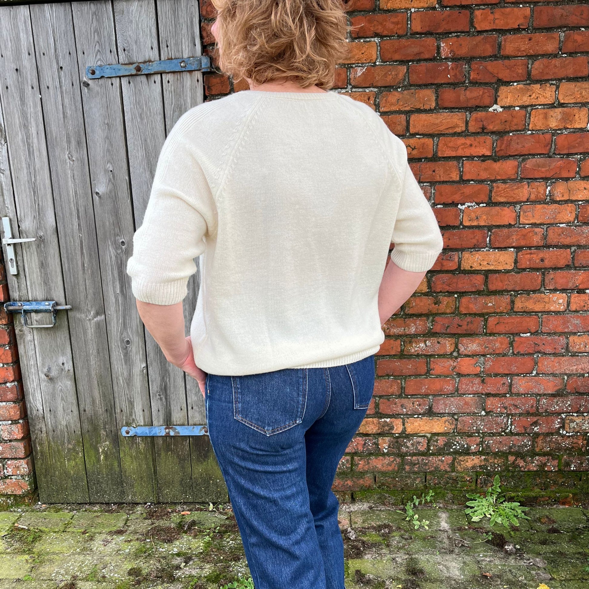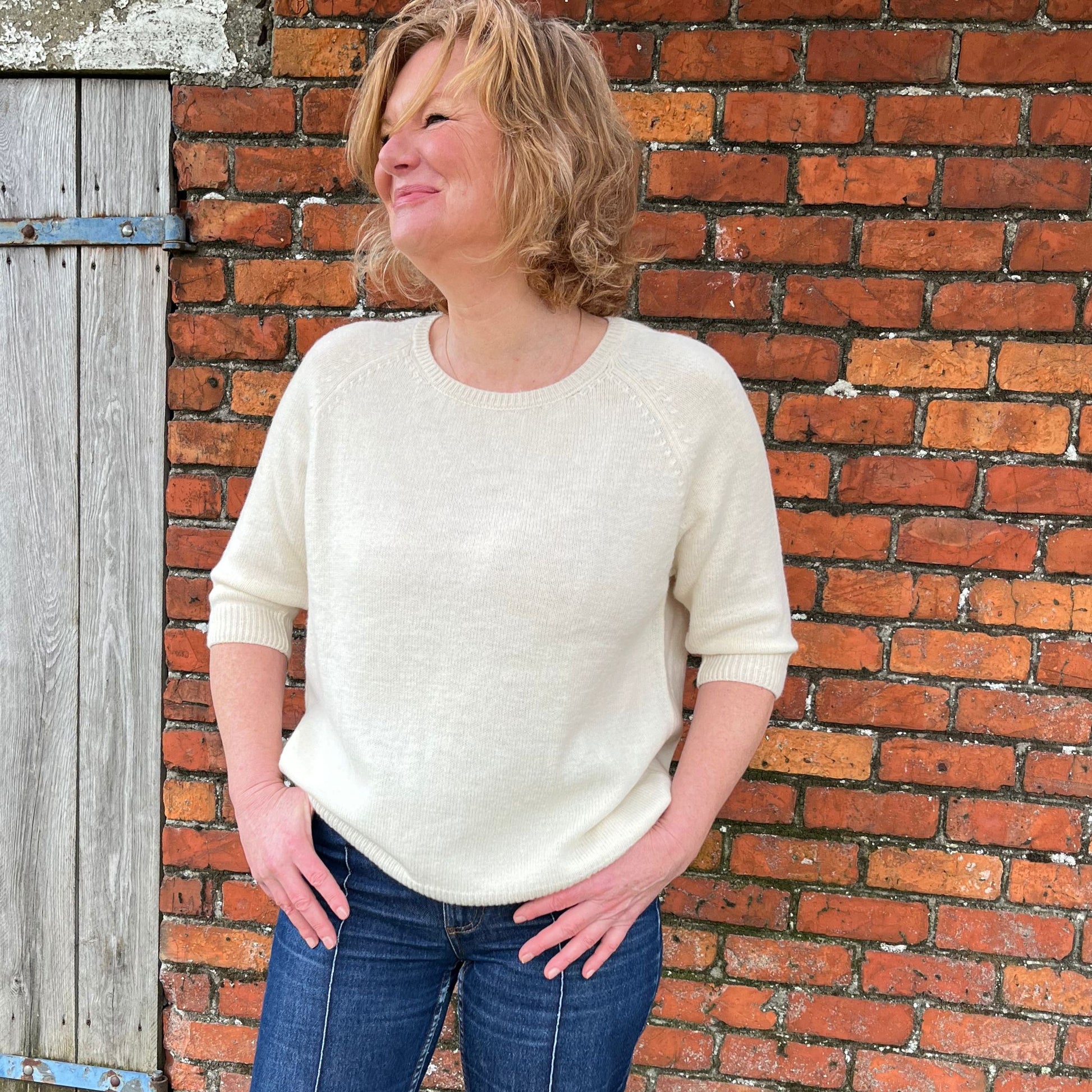 Een loszittende trui met een driekwarts raglanmouw, die juist over je elleboog valt. Het geribd accent over de lengte van de mouw geeft een speelse uitstraling. De ronde hals is vrouwelijk uitgesneden. Camilla is makkelijk te combineren met casual en meer geklede looks. Een tijdloos stuk, het jaar rond een pluimpje om te dragen, heerlijk op je blote huid.